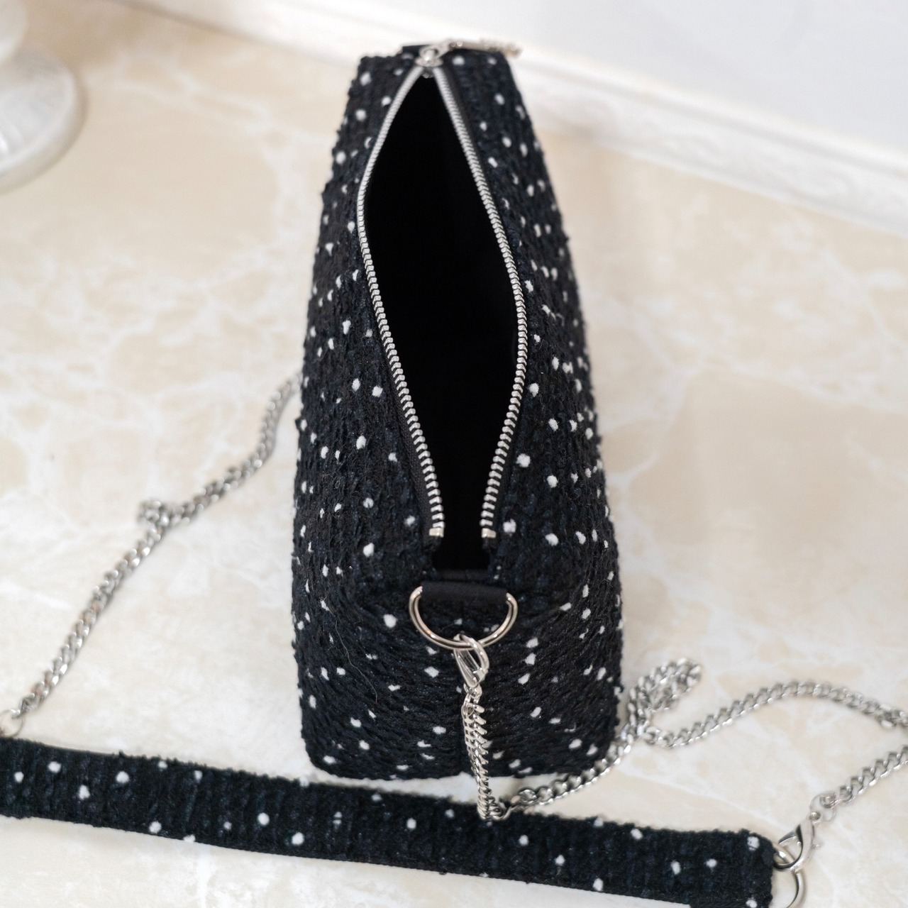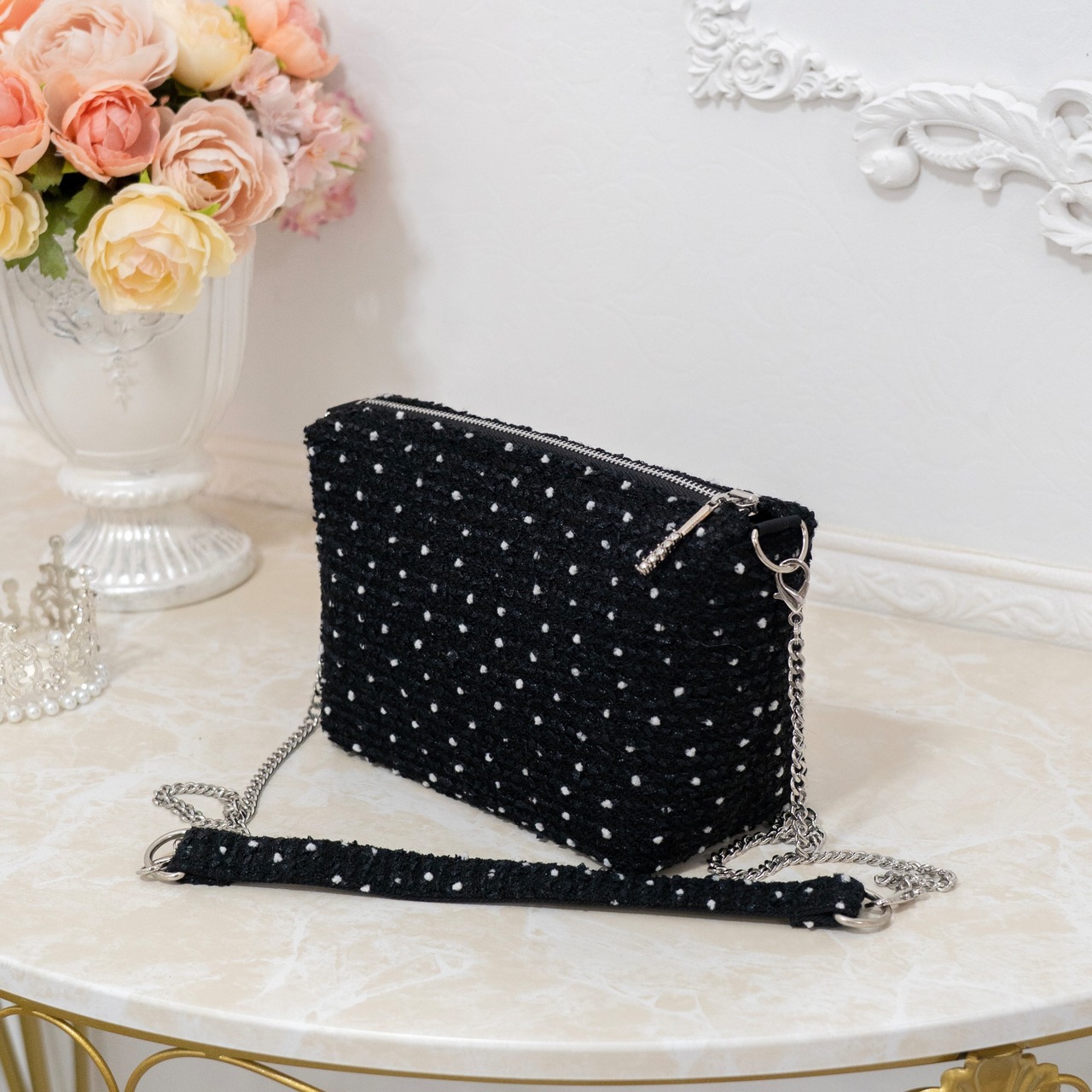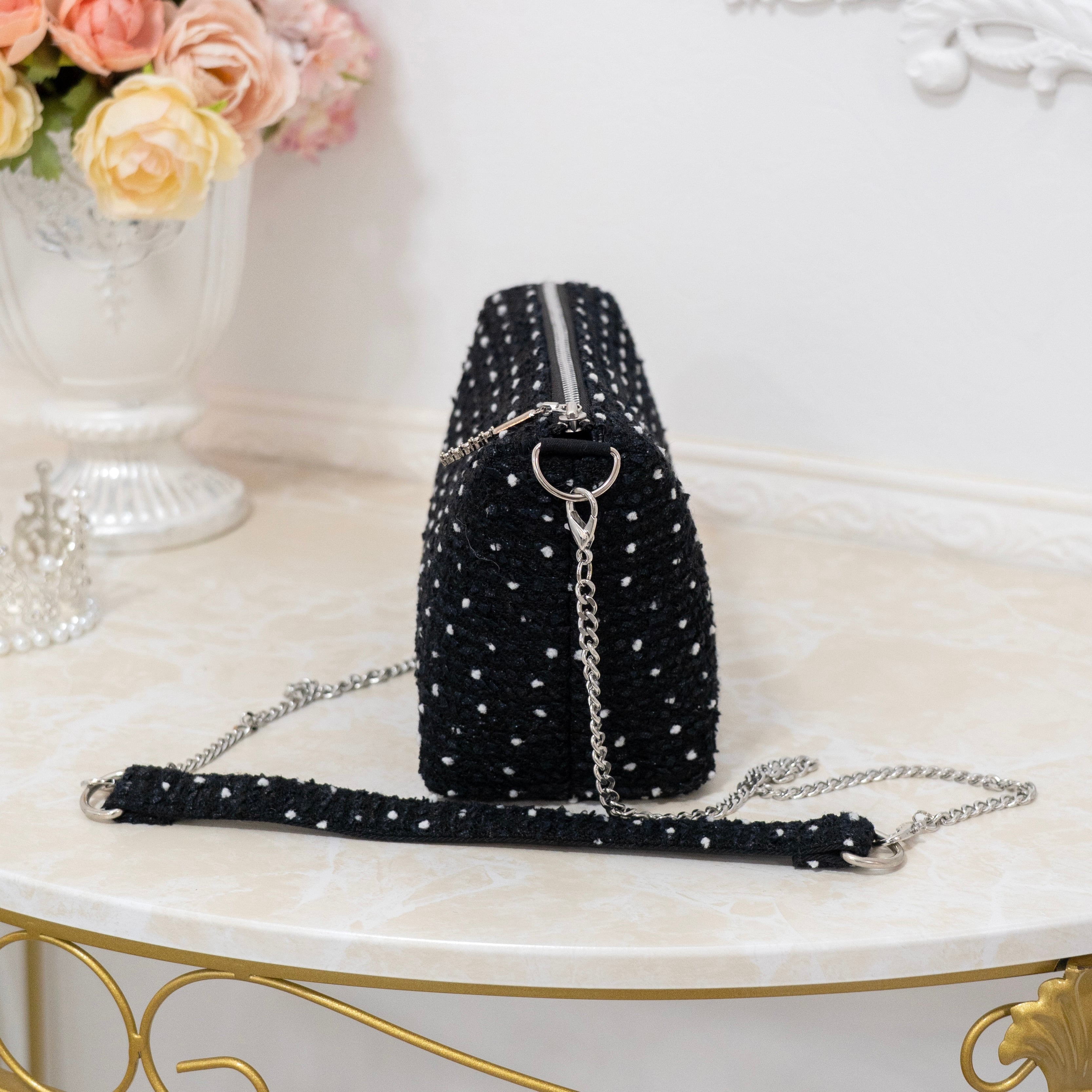 ブラックのツイードに、小さいホワイトのドットが大人可愛いお生地です♡