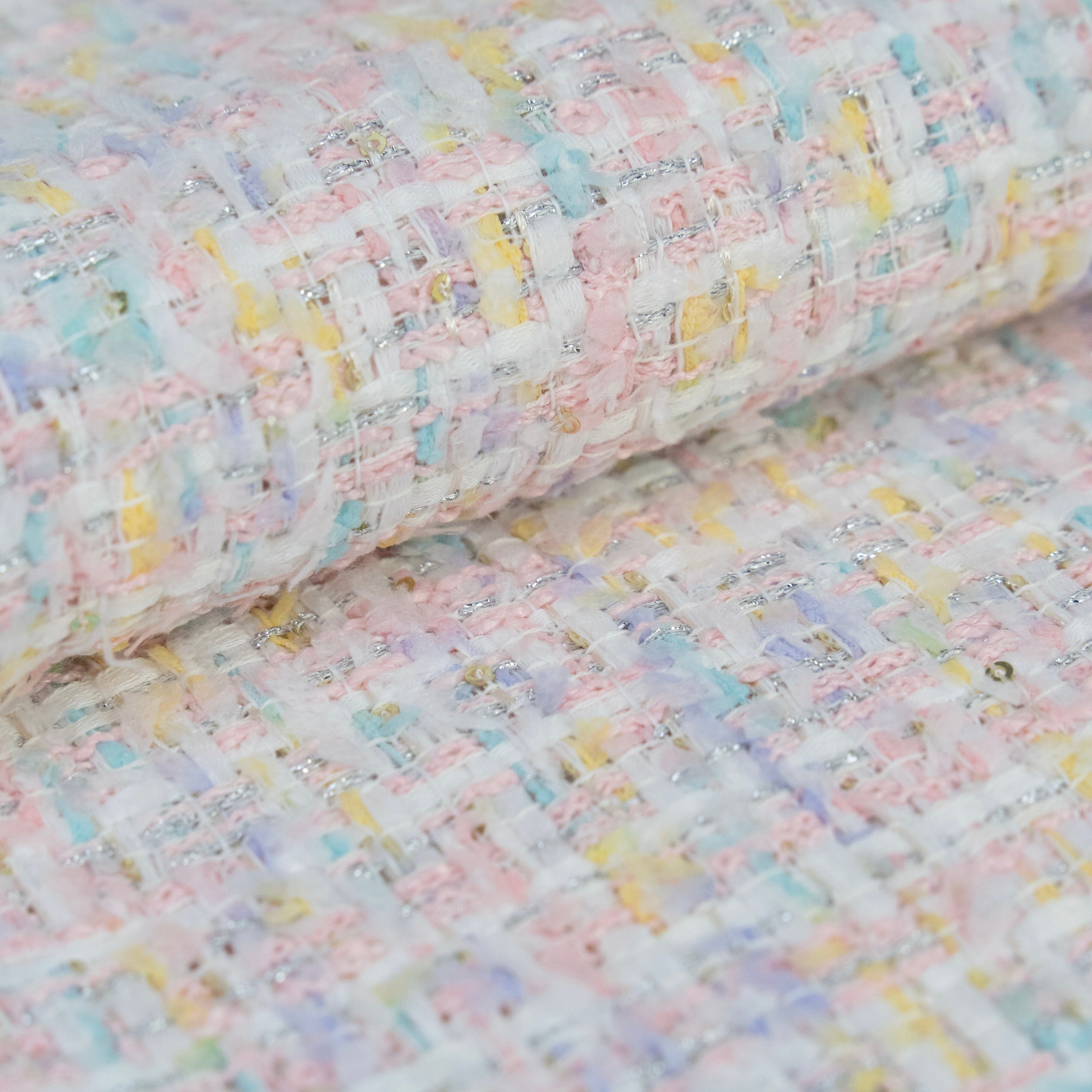 色んなお色のお洋服と合わせやすい、プリンセスパステルのツイードでお作りしました♡