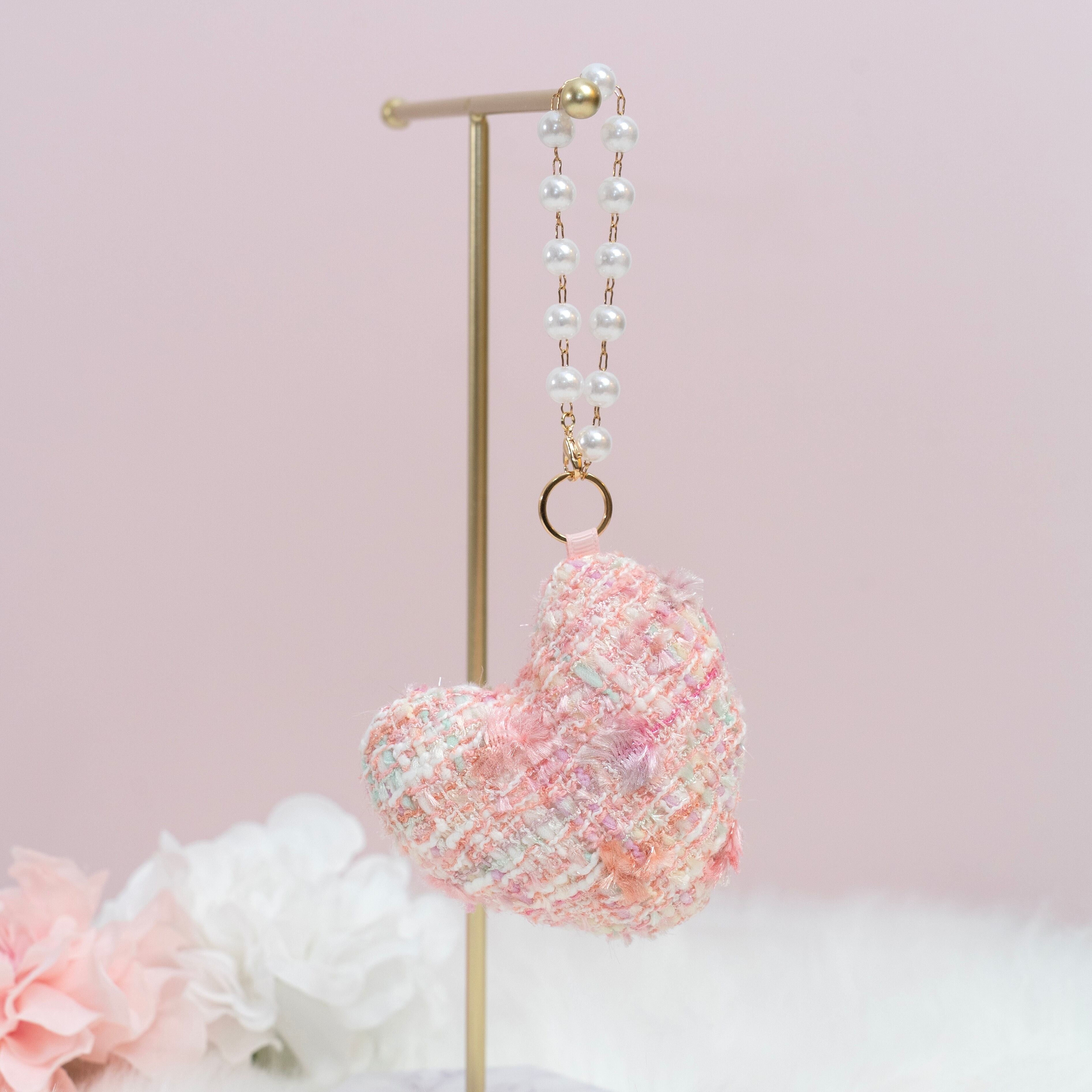ユニコーンキャンディーピンクのツイードでお作りしたハートチャームです♡
