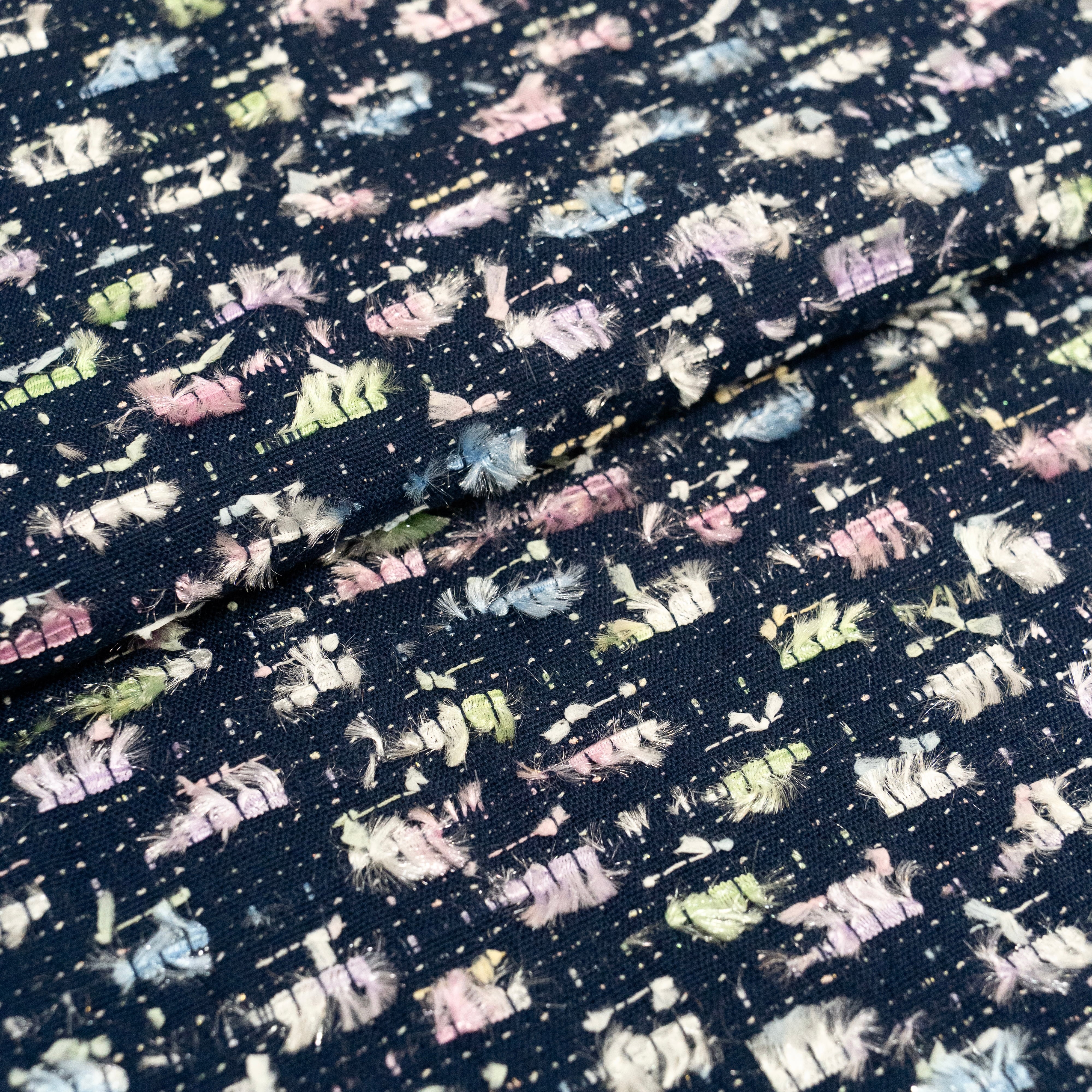 ネイビーをベースに、淡いピンク、水色、グリーン、パープルなど様々な色が織り込まれています♡