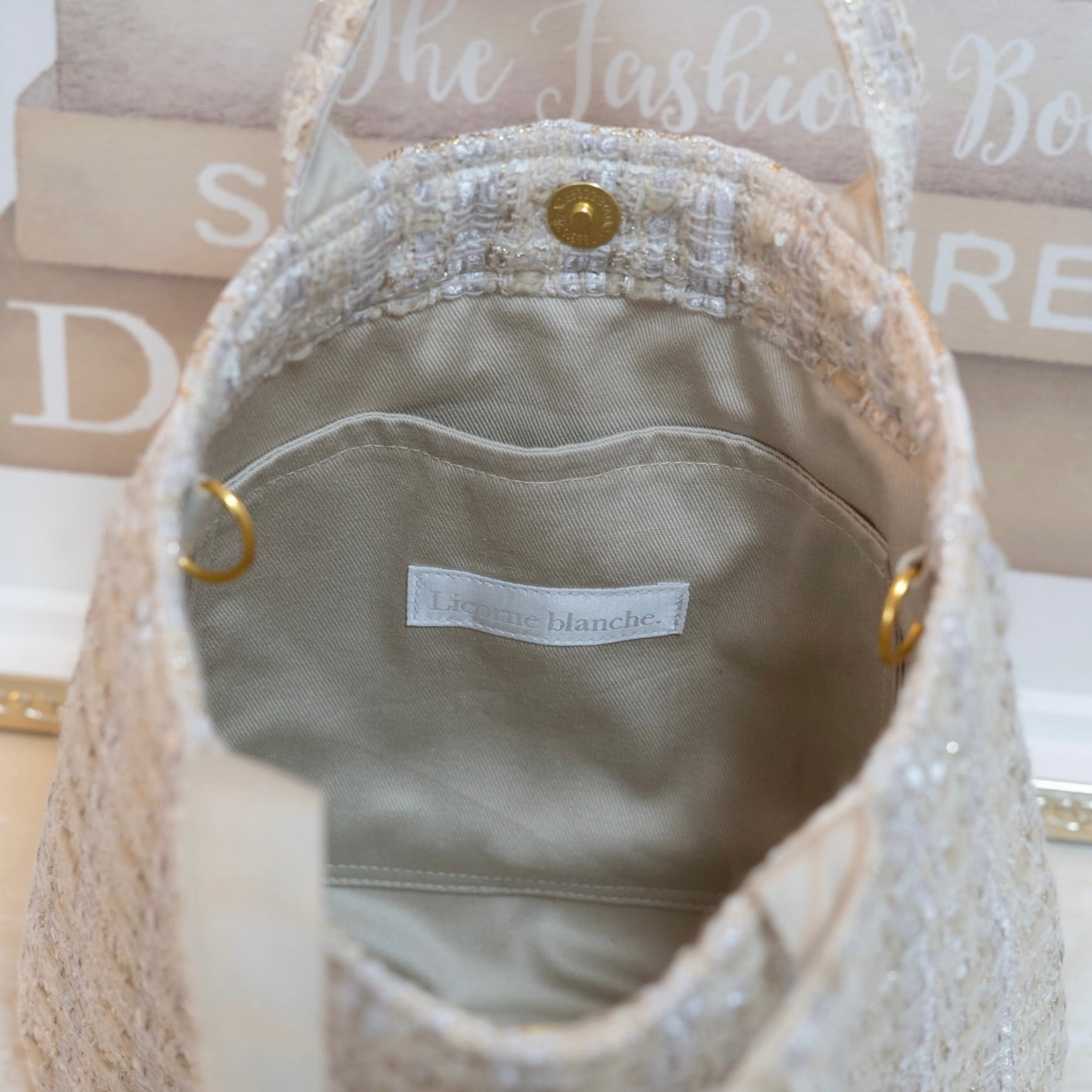 内側の両サイドに金具がついているので、お手持ちのストラップを付けてショルダーバッグとしてもお使いいただけます♡