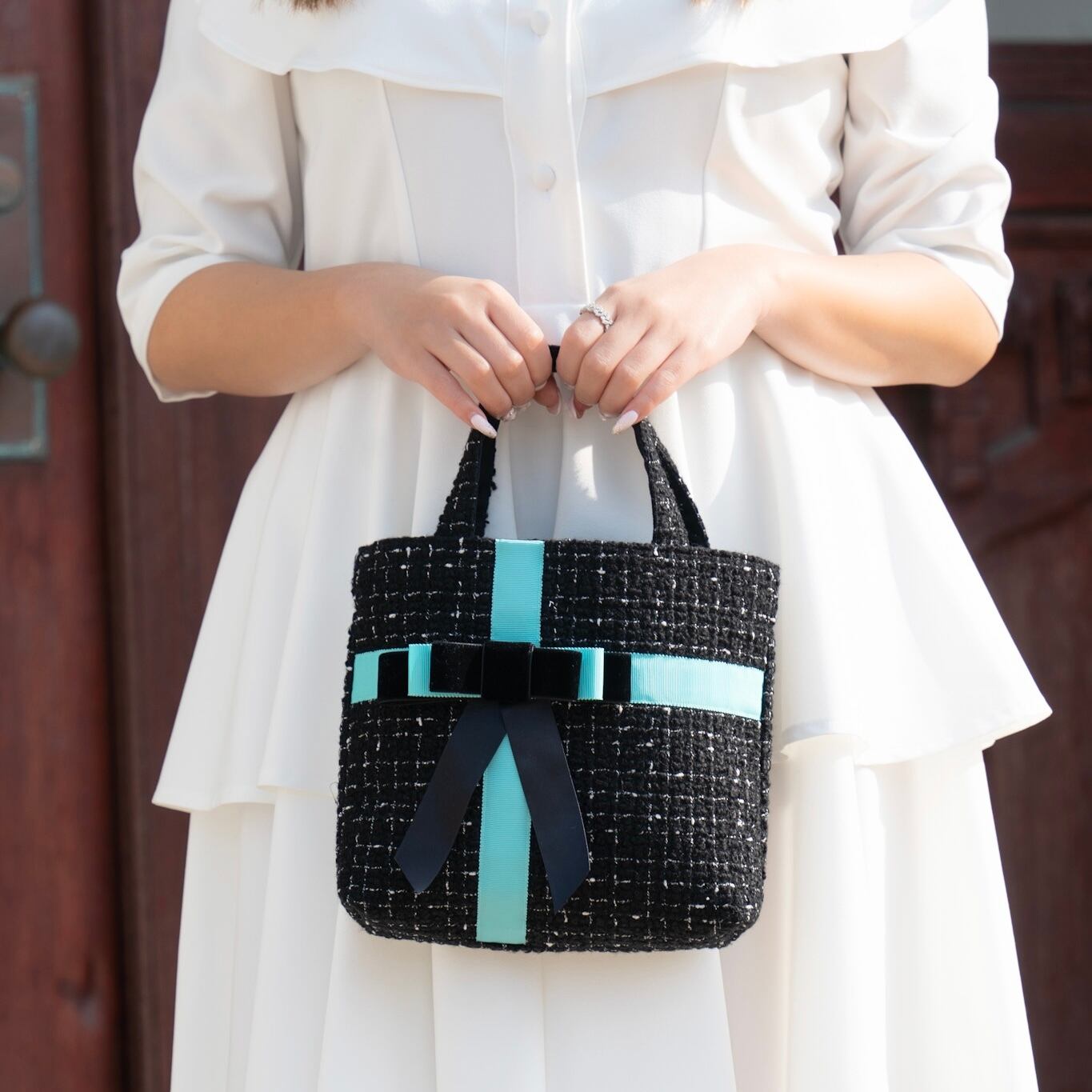 ティファニーブルーのリボンを使ってお仕立てしたギフトバッグです♡