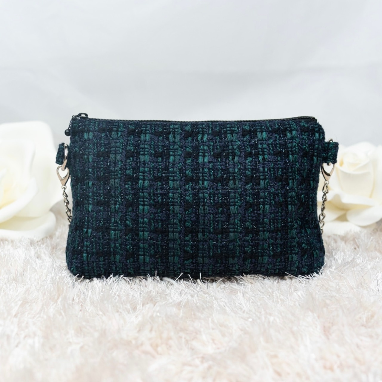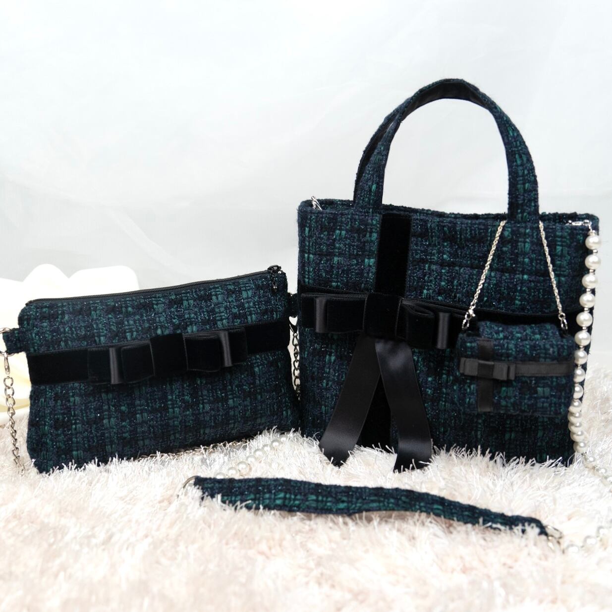 黒×紺×深緑のファミリアっぽい雰囲気のツイードでお作りしたポシェットです♡