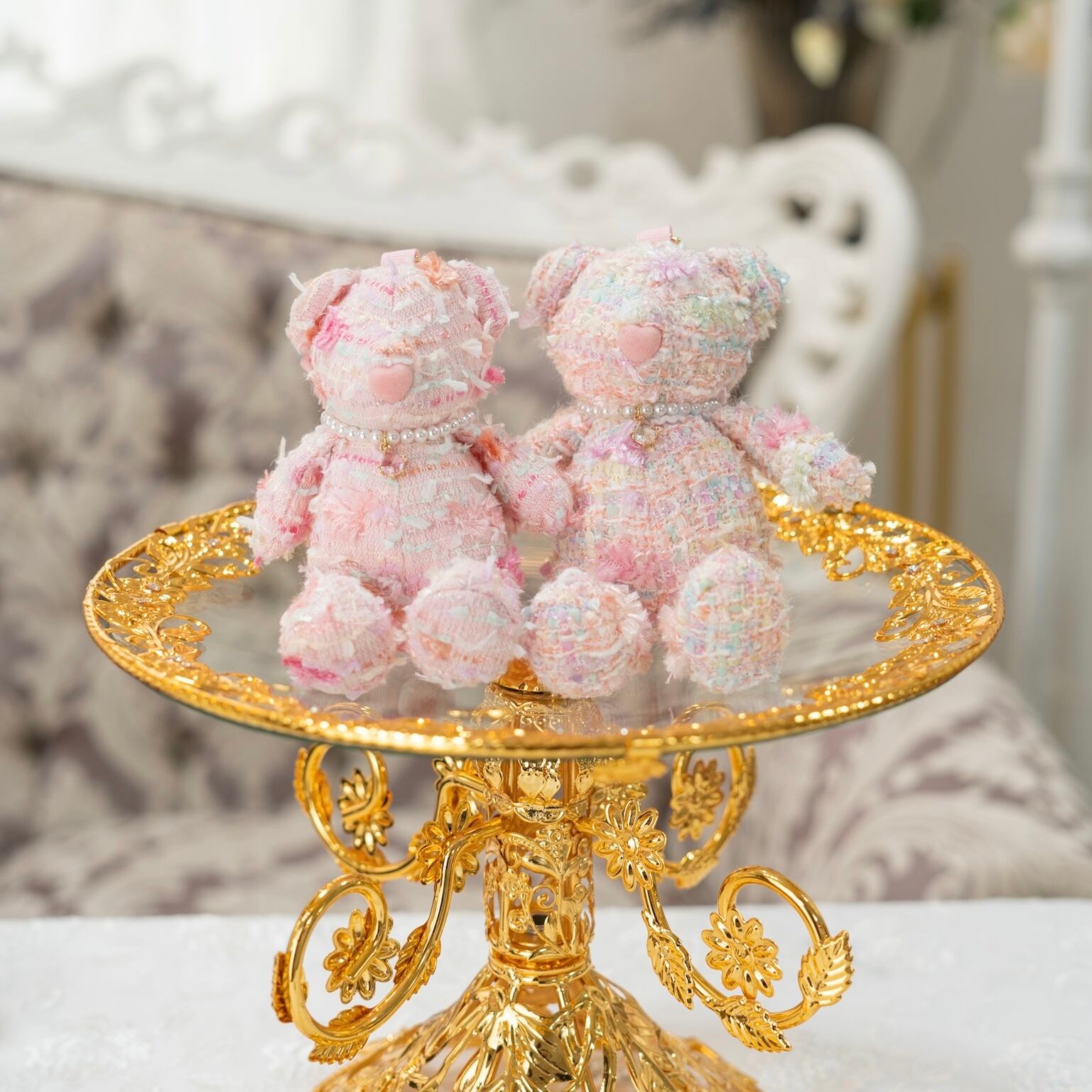 お鼻とチャームもピンクで、とにかく可愛いファンシーな雰囲気のツイードベアです♡