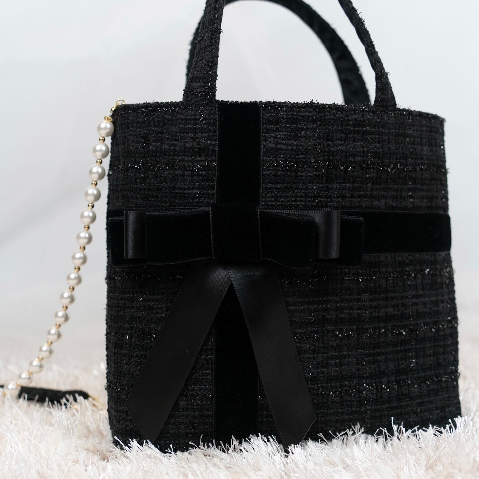 真っ黒なツイードを使ってお仕立てしたギフトバッグです♡