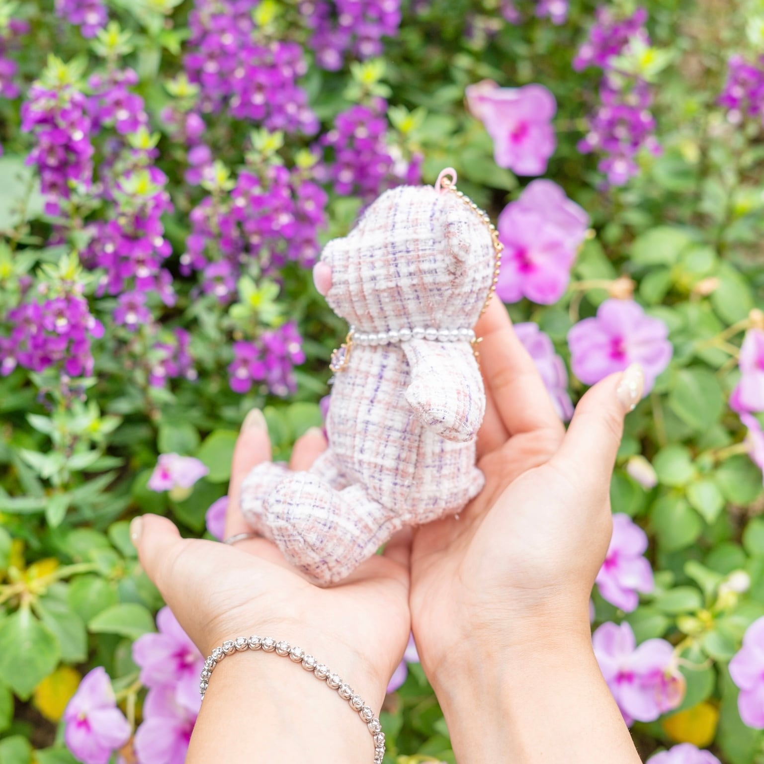 バッグや鍵に付けやすくて持ち運びやすいサイズ感でお作りしたので、カフェなどの外出先で一緒にお写真を撮っても可愛いです♡