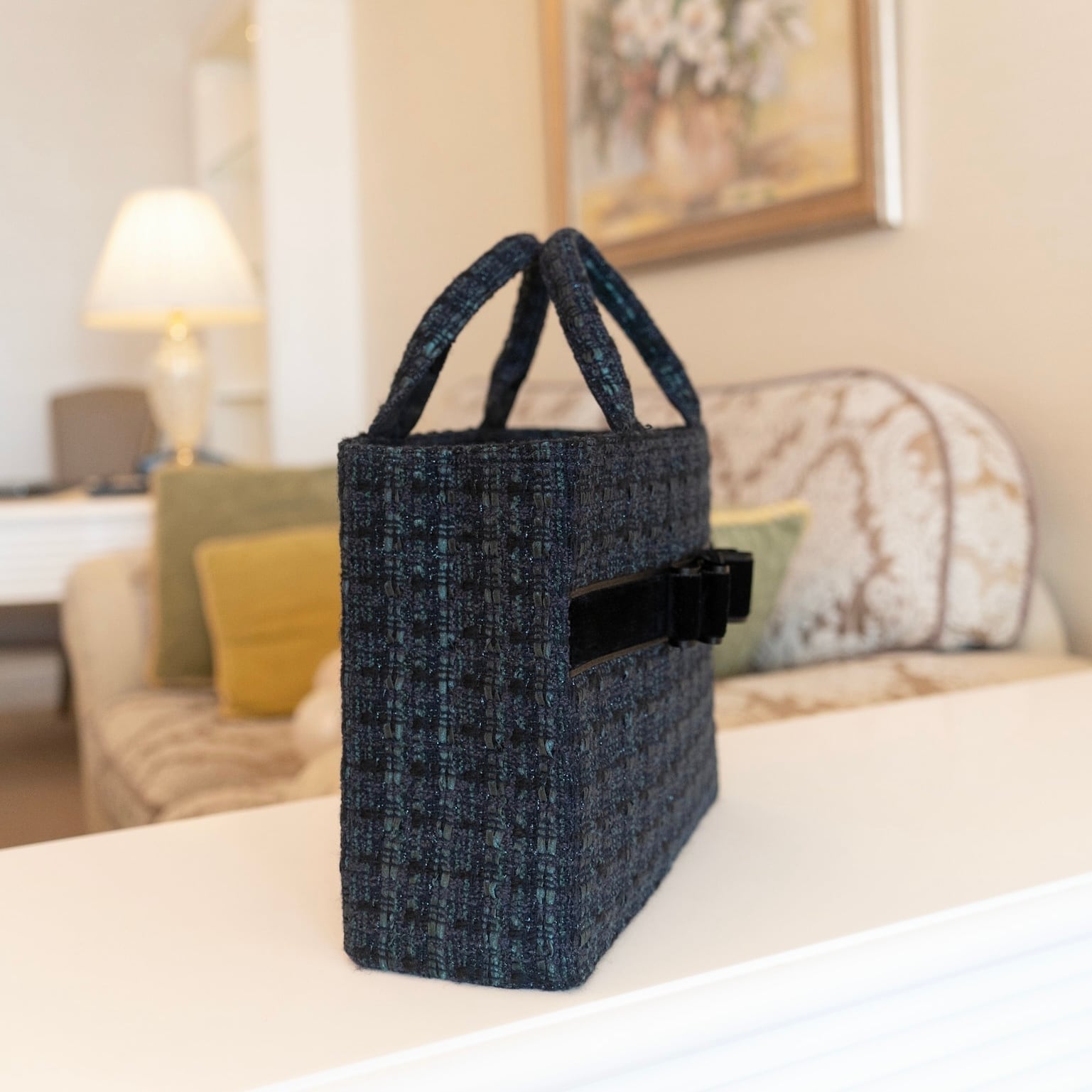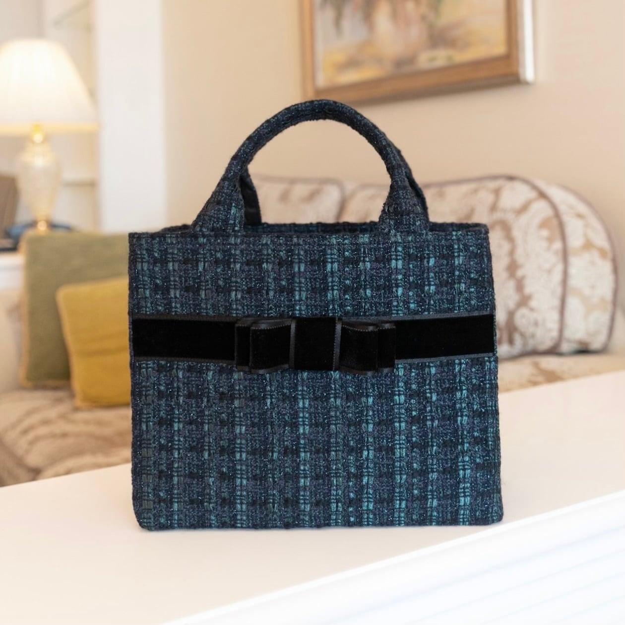 太めのエッジ付きのベルベットリボンで大人っぽいバッグに仕上げました。