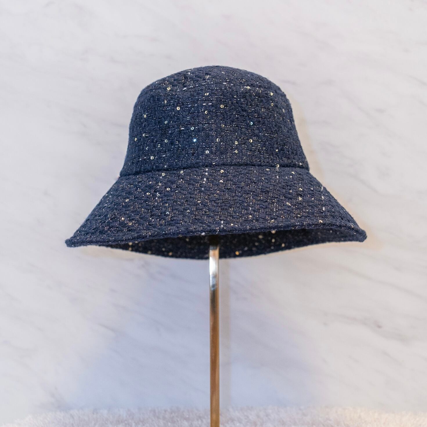 こちらのツイード女優バケハは、スパンコールとラメが贅沢に織り込まれている、とっても美しいネイビーのツイードでお作りしました♡