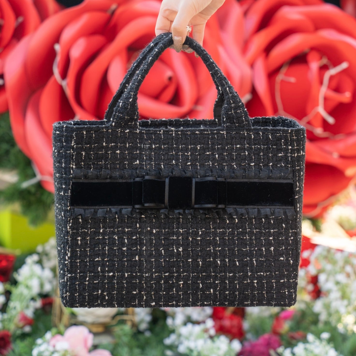 ブラックの尾州ツイードで、ギフトバッグのMサイズをお仕立ていたしました♡