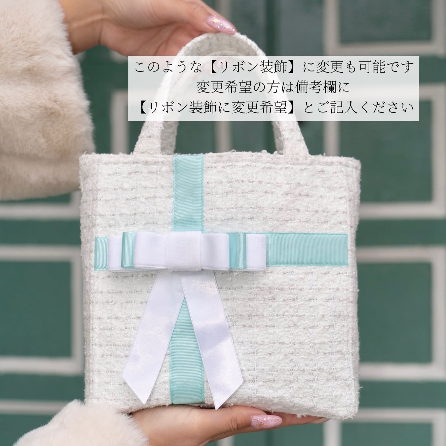 Mirosツイードにミニョン装飾を施したSサイズのギフトバッグ♡
