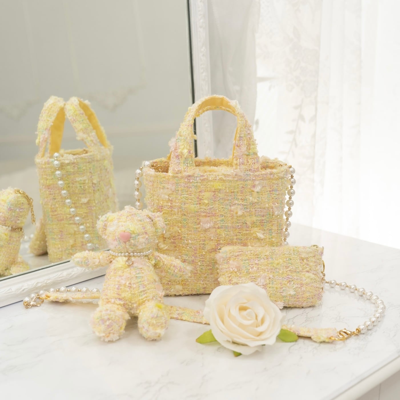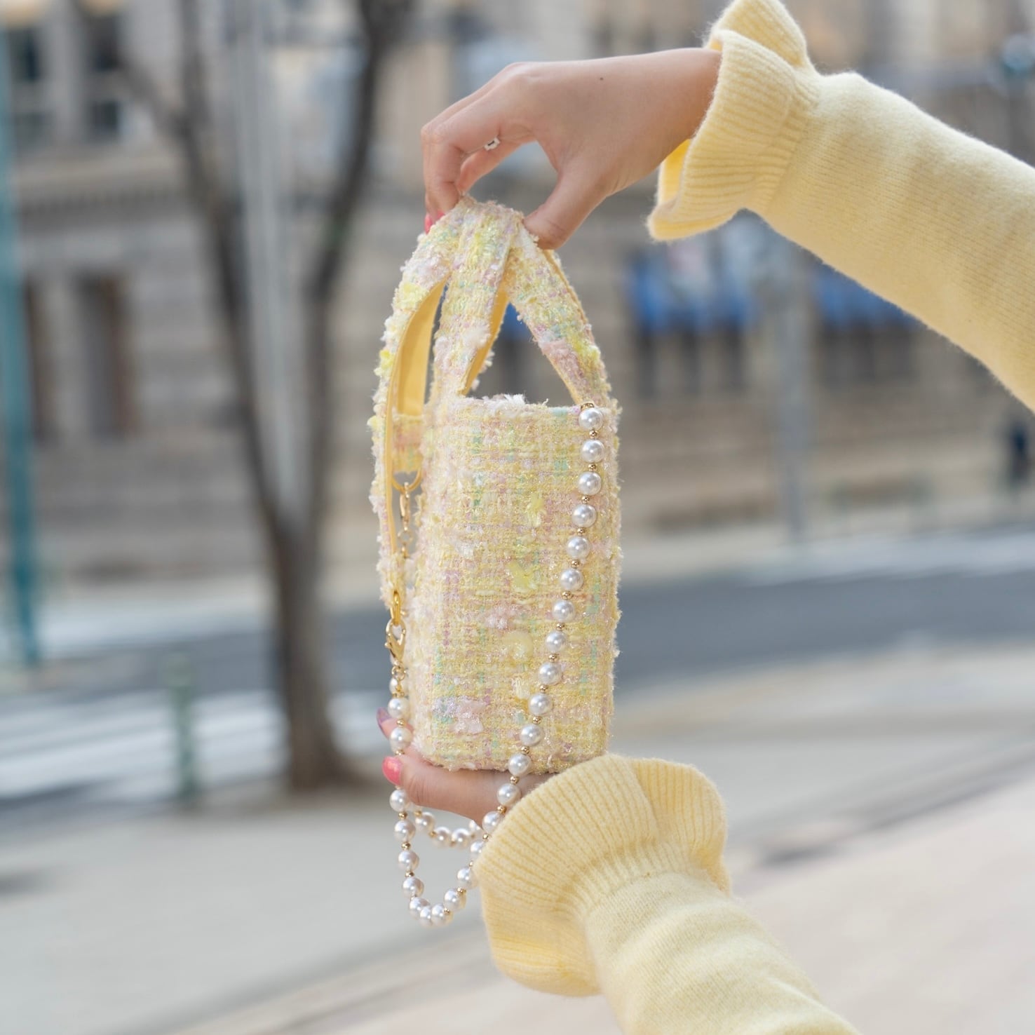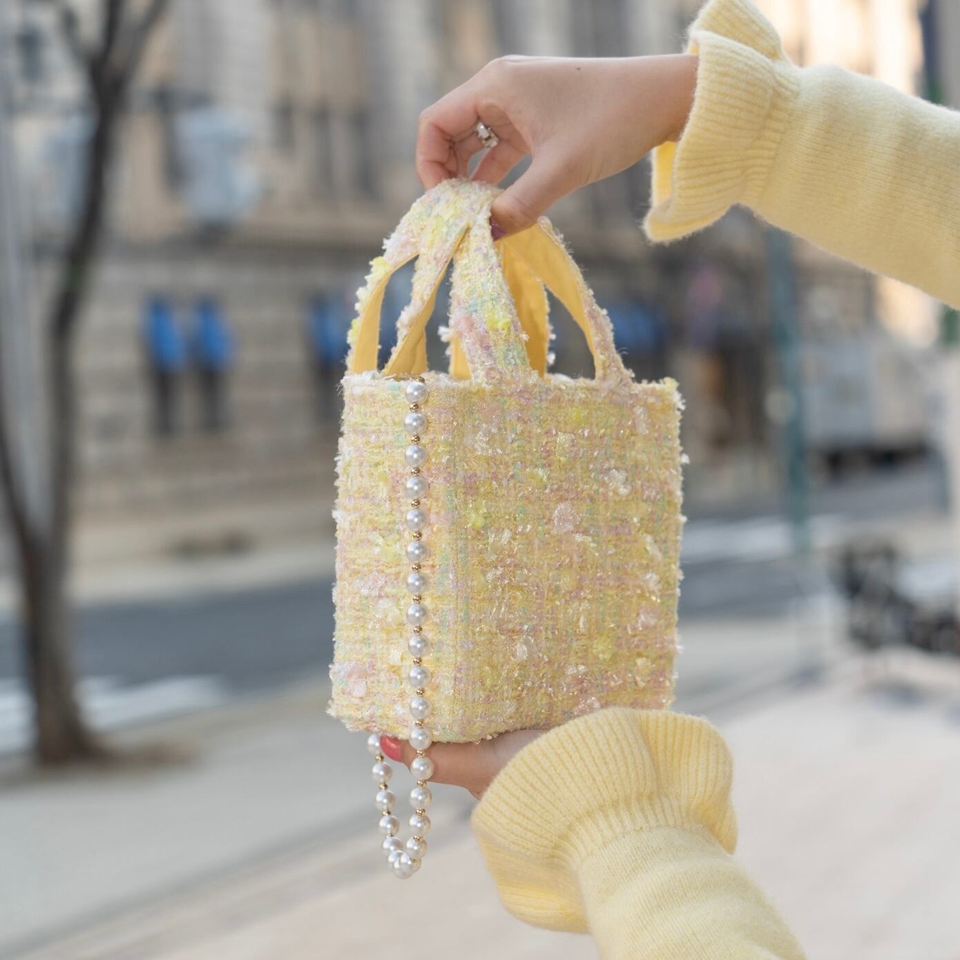 ツイードの可愛さを思いっきり楽しんでいただける、15cm×15cmの小さくて可愛いバッグをお作りいたしました♡